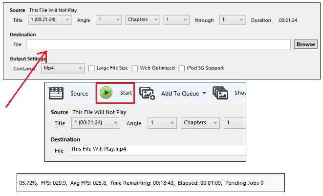 5. HandBrake shows the progress of the conversion with percentage completed and time remaining for conversion.
