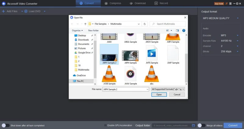 Firstly, open the Aicoosoft video converter file. Then click on ‘Add Files’ on top of the left-hand side, select all the desired mp4 video files to be converted from MP4 to MP3, and click on ‘Add'.