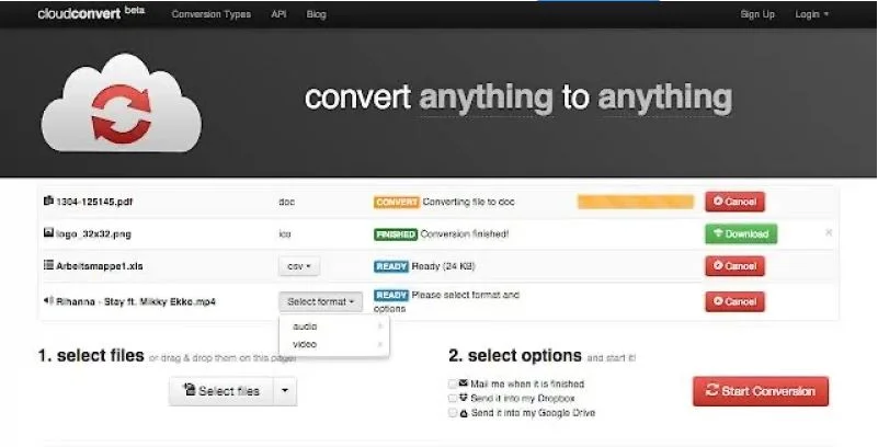 CloudConvert is a great tool that lets you convert media files like MP4A to MP3, MOV, and other output formats. This user-friendly program, CloudConvert, uses AI tech to execute all tasks. It supports the conversion of audios, excel spreadsheet, JPEG, and PowerPoint. Isn't that great? Also, you can use the program without installation.