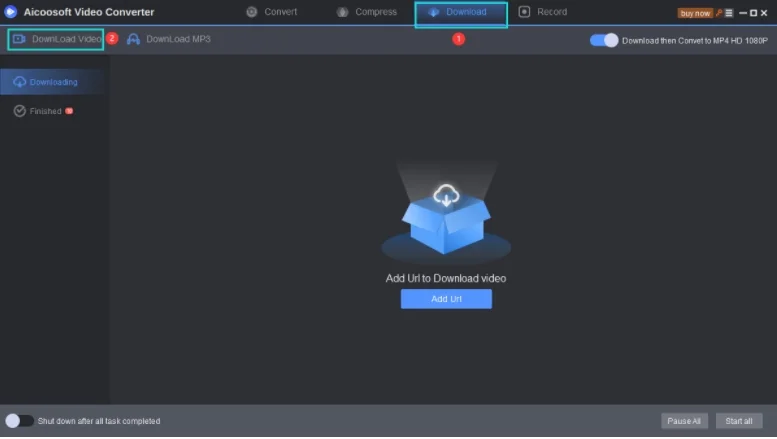 Download, install, and run the Aicoosoft software and click on the Download tab at the center of the main interface. Next, to paste the copied link to the program interface click on the Download Video button at the left corner.