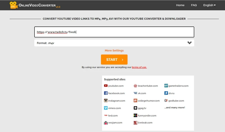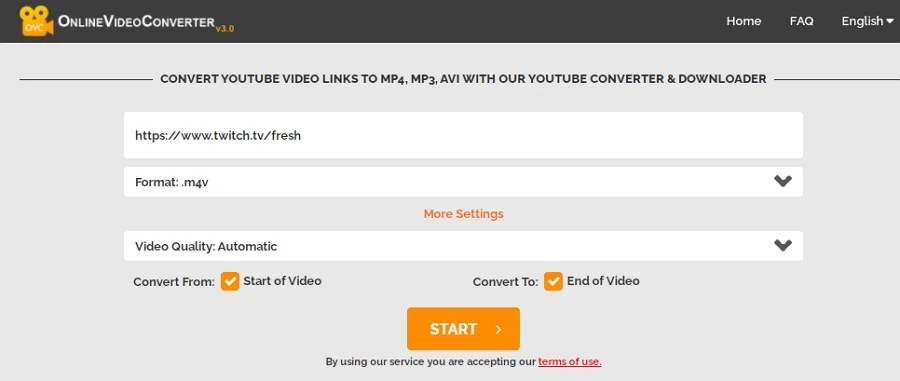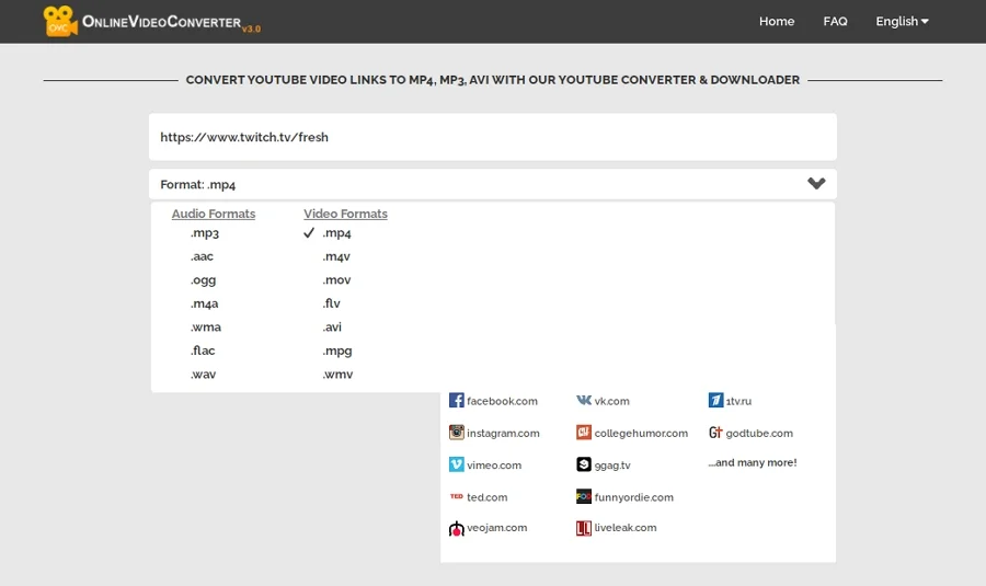 If you are looking for a pocket-friendly option to download Twitch videos, OnlineVideoConverter is a great tool to consider. This is a browser-based program that has a user-friendly interface and does not require technical know-how for downloading videos. Supporting Twitch and several other sites, download can be done in different formats and you can even choose the quality as needed. Option to download the selected part of the video is also there.