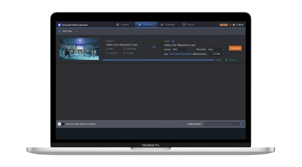 Aicoosoft Video Compressor is efficient at multiple video compressions, allowing you to compress unlimited videos with one click.