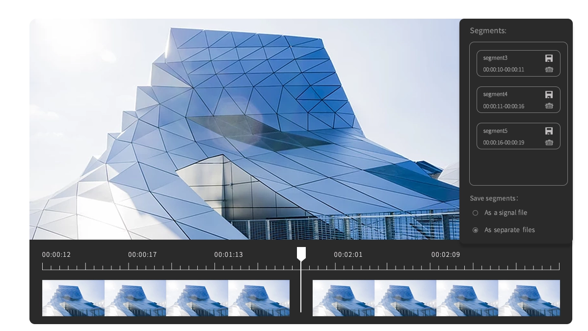 Flexibly trim videos into clips, easy to delete unwanted segments or merge multiple segments you want into one from a movie or TV episode.