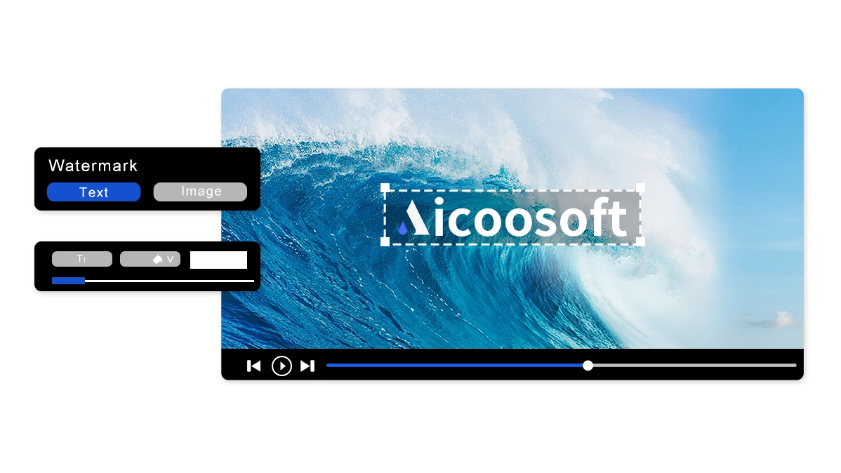 Add text as a watermark easily, and support to adjust the font, color, size, rotation or position of the watermark.