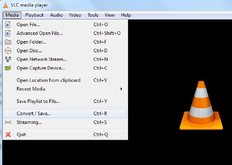 Open the VLC media player and then click on the Media button and then click on the Convert/Save button.