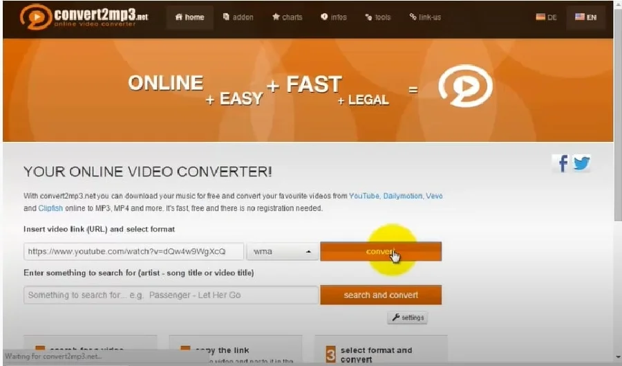 Visit the Convert2mp3 website! Then Copy the URL of the WEBM file you want to convert and paste in the 'Insert video link' box. After that, click the drop-down icon beside the search box to select MOV as the preferred format.