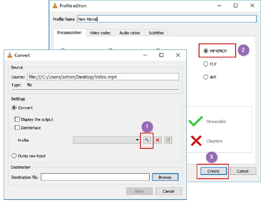 Click on the Settings icon in the Profile section to bring up Profile edition > Rename the video > and then check the MOV as the output for your video format.
