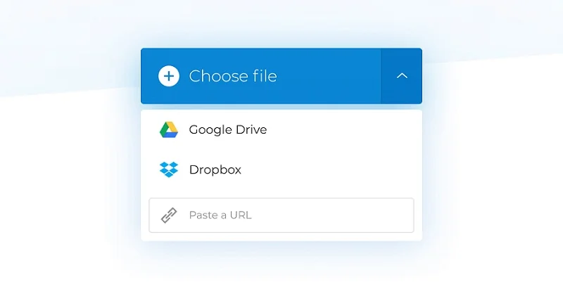 Step 2: Drag and drop the MP4 file from your Mac, Windows, or iPhone. You can choose the file from Dropbox, Google Drive, and the YouTube URL from the inverted arrow.
