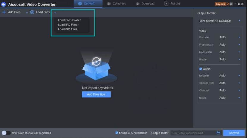 First of all you have to install the Aicoosoft Video Converter in the computer. Now insert the music CD in your computer CD drive. Run the software, click on the “Load DVD” button and this option will load the video files in DVD.