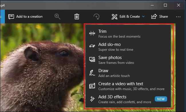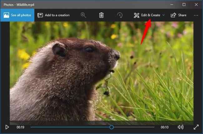 Step2: The MP4 video will now open in the Photos app.Where to edit, you need to click the “Edit & Create” option from the toolbar.