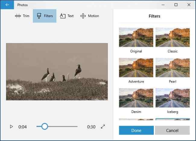 Step6: The in-built video editor allows you to apply 3D effects and filters from Adventure to Sepia to make your video outstanding.