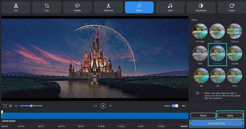 Once you have finished off with the editing, preview it, and tap the “Apply” option. With no delay, save the file with the “Save and Close” option.