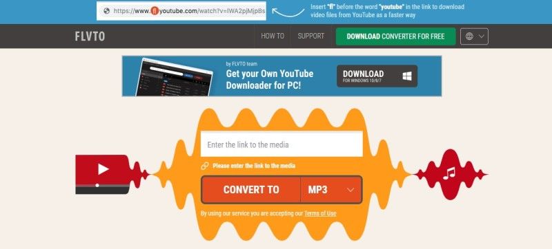 Flvto is a free online converter consisting of various conversion aspects. It is mainly a YouTube converter, which means you can convert the YouTube format FLV easily to MP4. Also, this online tool is popular to convert YouTube videos into MP3. There are significantly fewer choices people used to use FLV for MP4 conversion. Therefore, Flvto may not be that compatible to convert FLV to MP4 in an efficient manner.