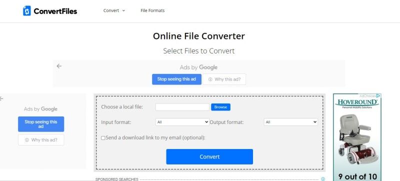 Step 1: Go to Convertfiles official link, and hit the "Choose a local file" button.