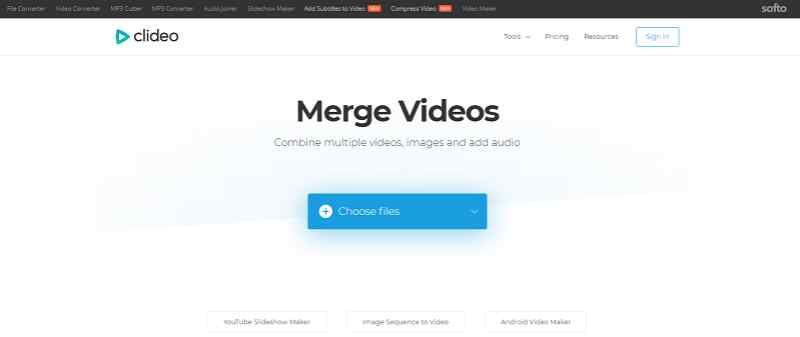 Clideo stands as our first tool with which you can merge MP4 files online. It allows you to combine multiple videos, images and mix it up suitable audio at ease. In just one-click, you can merge MP4 on Clideo, supporting all video formats along with resolution availability and crop features. While it is entirely online, you get high-security with support over Google Drive and Dropbox.