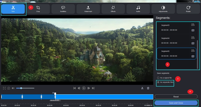 You are required to upload the video clips and cut the sections you want to split. Press Ctrl + C on the keyboard and then delete the scenes you want to break. Well, we find the process a bit confusing when you have not learned from any tutorials.