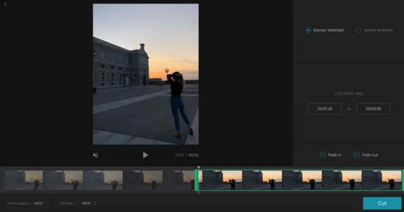 If you want to use MP4 Splitter free by Clideo, you must first upload the MP4 clip over its official website. Then, you can use the Clideo’s editor tool to split MP4 video into parts. There is also an option to fade in or out the video basis the parts you want to extract or delete.