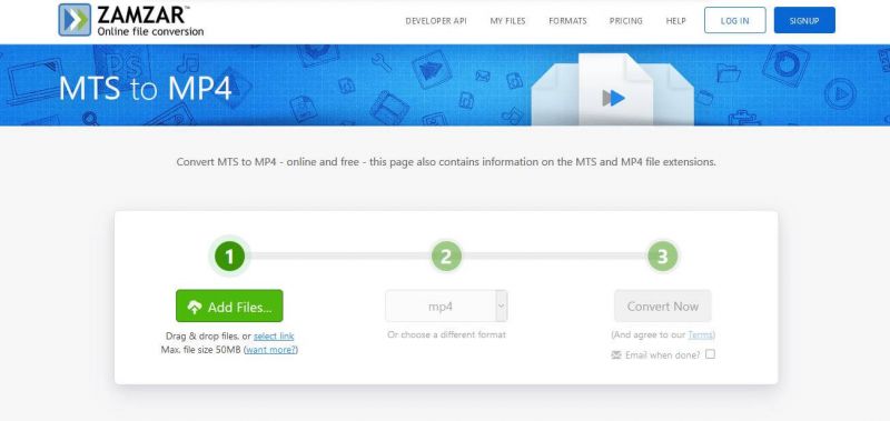 Zamzar is a very powerful MTS to MP4 free online converter website which allows you to convert the video and audio files online.