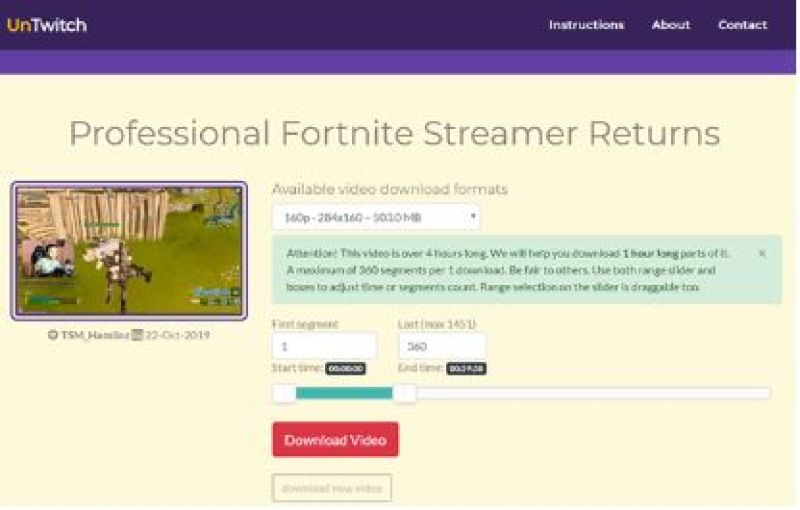 UnTwitch will immediately analyze the clip. Wait for it to finish analyzing, select your desired video quality, then download the converted clip.