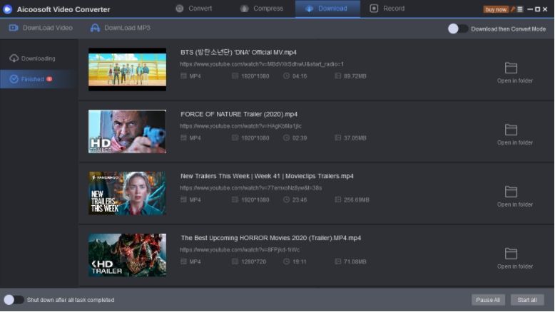 The interface will show the progress of the video download and upon completion, you can check the video from the Finished tab. To open the video on your computer click on the folder icon next to the video.
