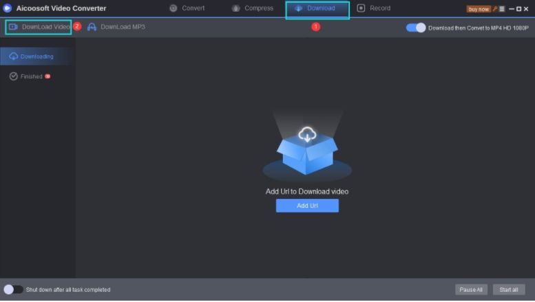 Download, install and run the Aicoosoft Video Converter software on your system and on the main interface choose the Download tab