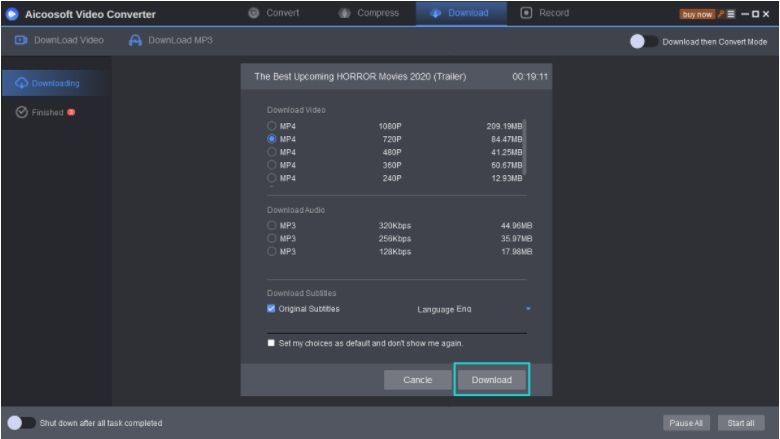 When you want your Dailymotion videos to be downloaded in high-quality files it is important to use professional software and one of the reputed names in this category is Aicoosoft Video Converter. With an intuitive and user-friendly interface, the software allows HD video downloads from over 1000 sites including Dailymotion. You can choose the format as well as the quality in which you want the downloaded file. The Dailymotion videos can also be converted to high-quality MP3 files.